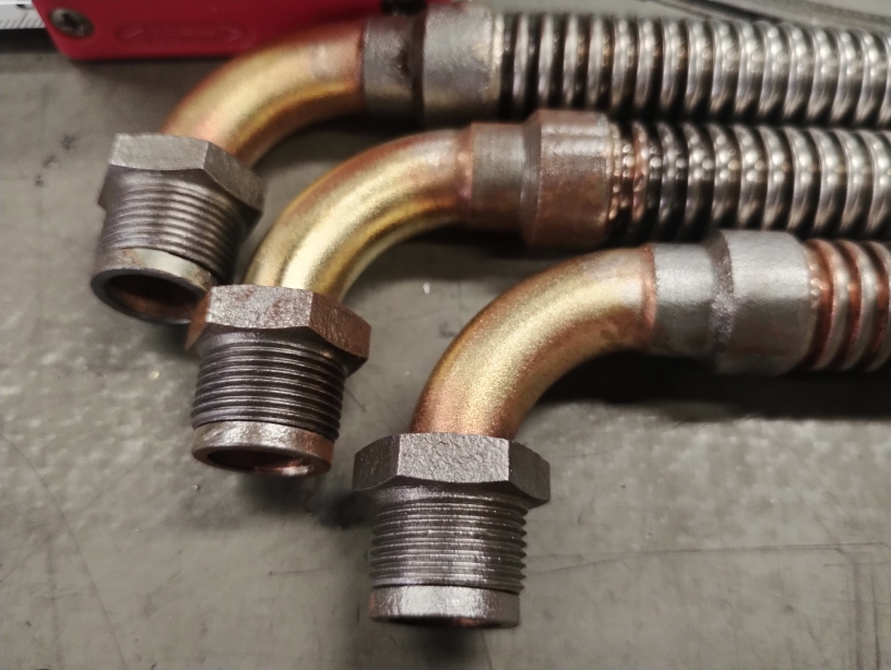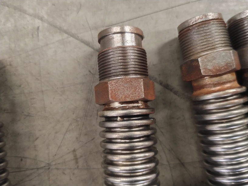 - 酸洗い時に発生した錆が金具の随所に見られます。進行を防ぐため出荷時まで防錆を付けて保管します。ステンレスジャバラの部分は、酸の影響は無いのでご安心ください。