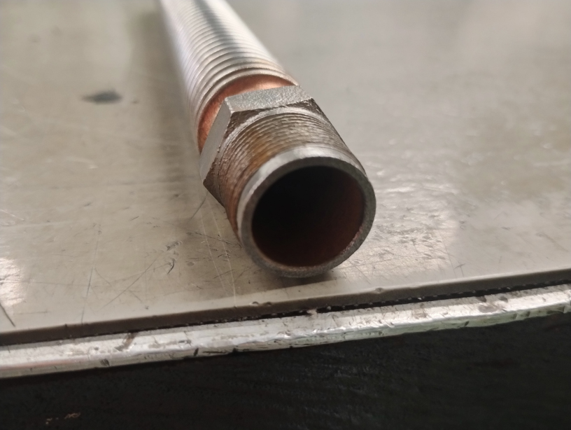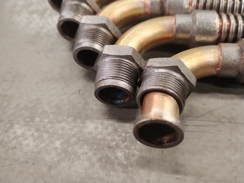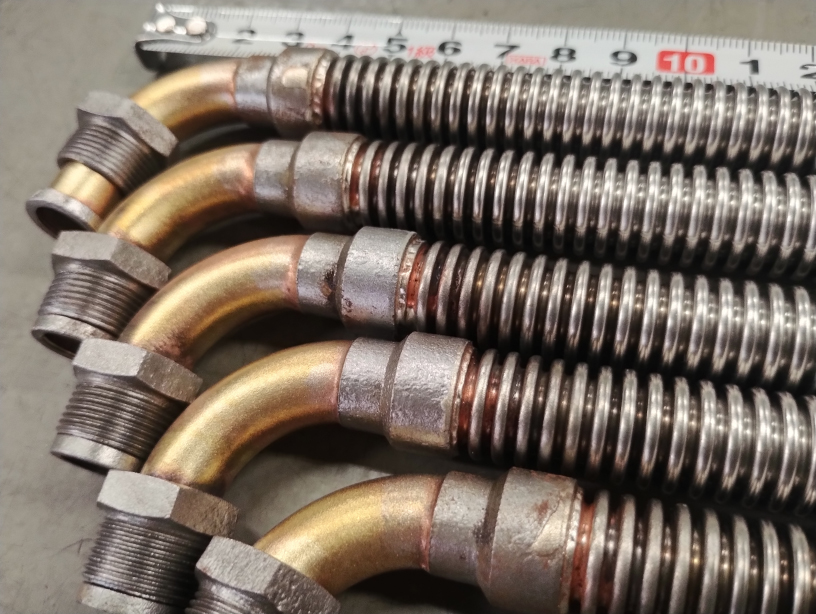 ・ロウ付け後の酸洗い条件が悪く、金属部品(フレキ部は除く)の表面が傷んでいる。※フレキ部分はステンレスのため、酸の影響は見られません。