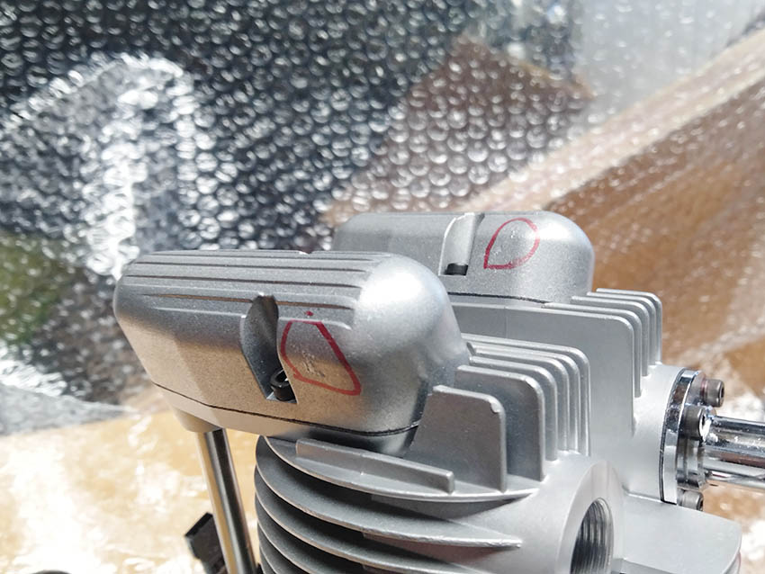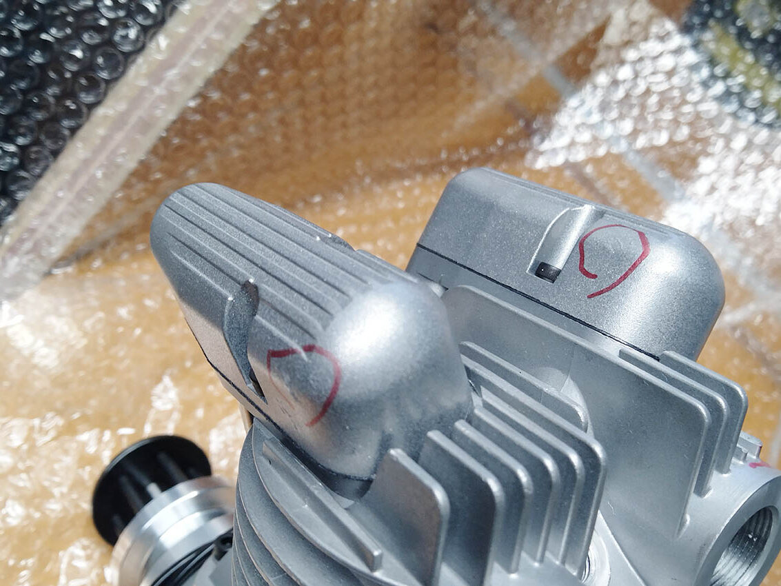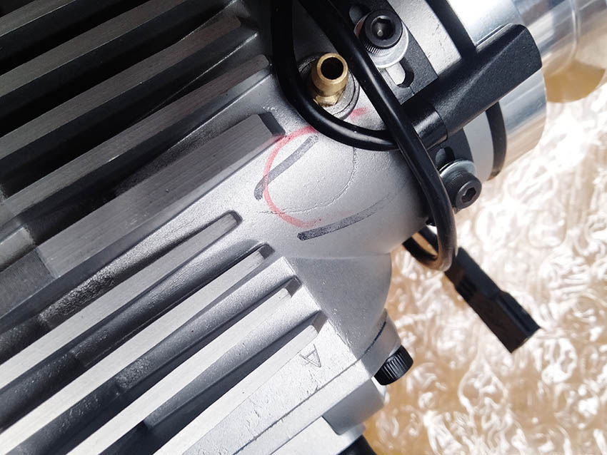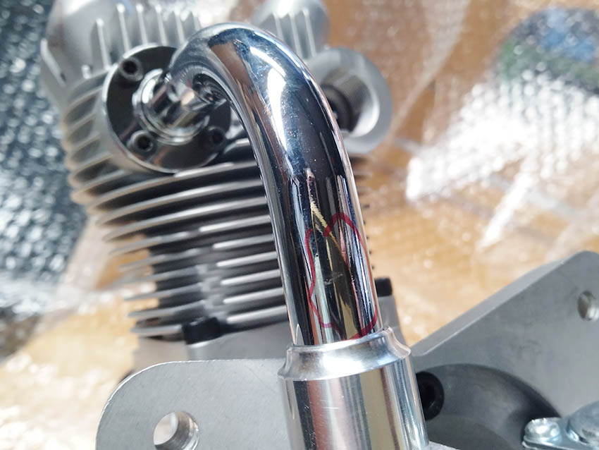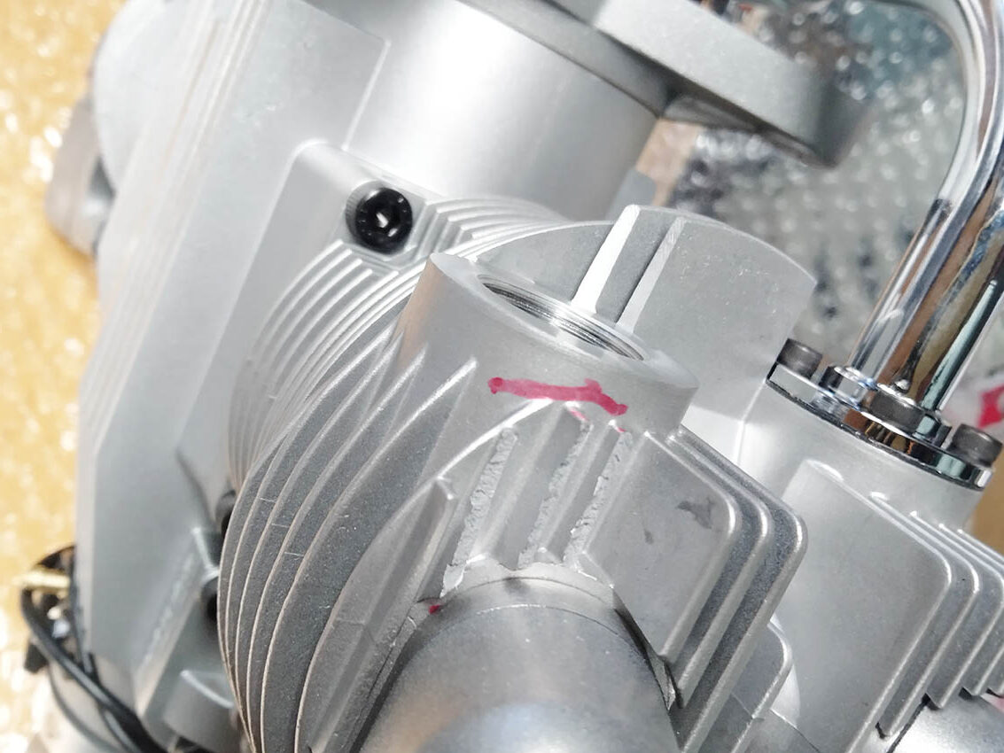 - 左シリンダ後方のフィン、右シリンダーの排気口後方のフィンが欠けています。